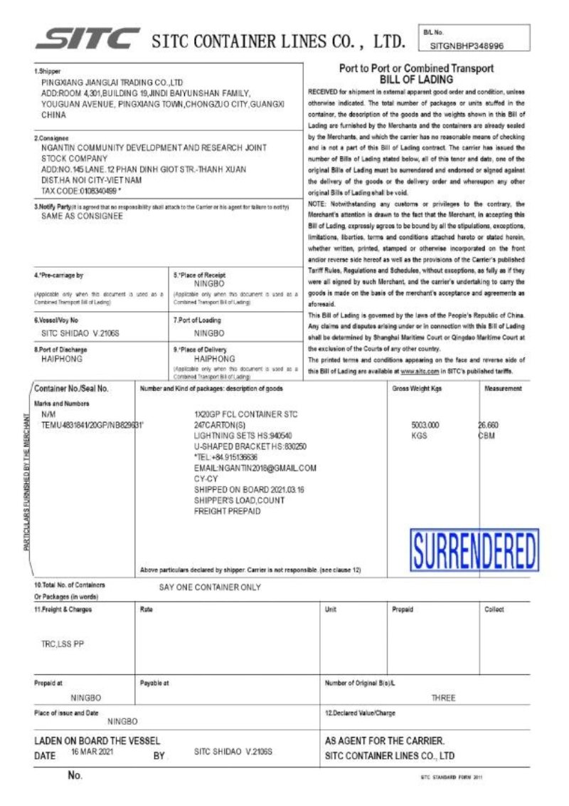 - Ô số 10: Ghi tên cảng, địa điểm nơi hàng hóa được xếp lên phương tiện vận tải chuyển đến Việt Nam.